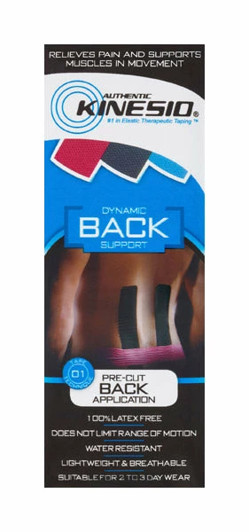 Kinesio Pre-cut Back Application can be used to relieve back pain and spasms and is designed to support over stretched back muscles, lower back pain, lumbago and sciatica.