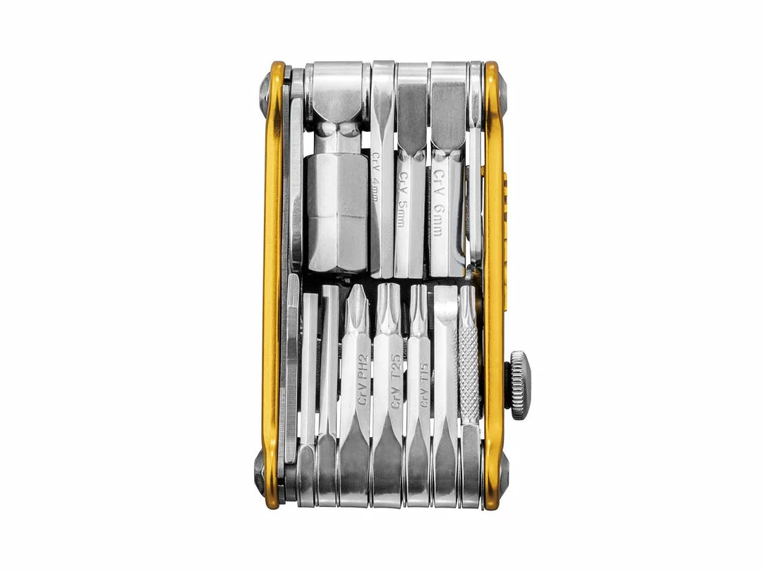 30 function, pro-quality, precision mini tool with integrated tubeless tire repair tools. Removable chain tool with built-in master link tool for removing and reinstalling master link type chains stores securely within the Mini PT30 body. Forged alloy body. Perfect for any road or trailside repair.