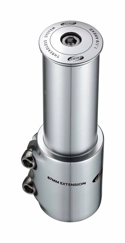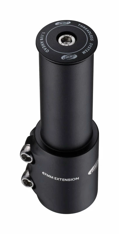 BBB TubeExtend Steerer Extender 28.6mm BHP-22 6061 aluminum steerer tube extention. Total extention: 67mm. Fits steerer tubes with diameter 28.6mm. BAP-02 RoundHead included. Colour: Black